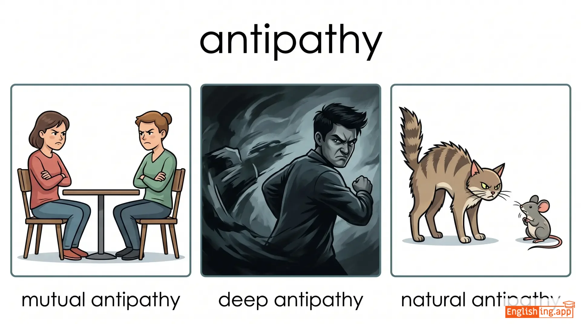 mutual antipathy, deep antipathy, natural antipathy, feel antipathy, antipathy toward