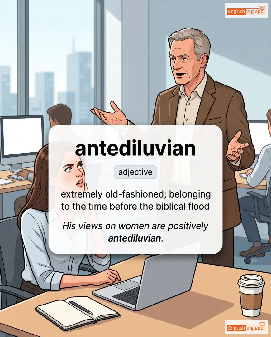 extremely old-fashioned; belonging to the time before the biblical flood