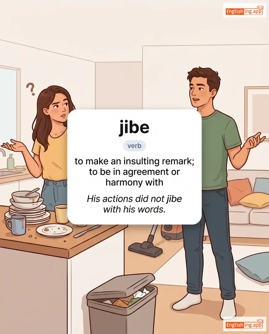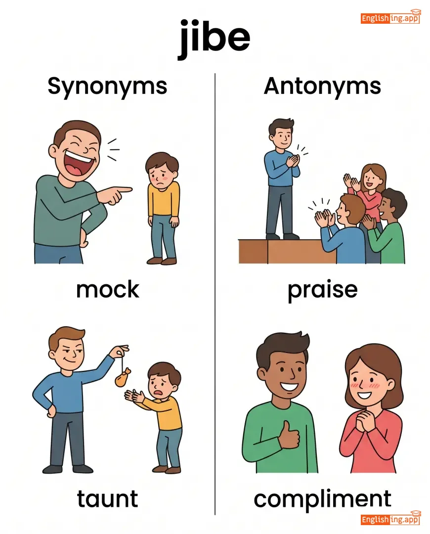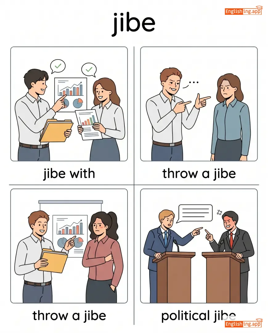 jibe with, throw a jibe, political jibe, sarcastic jibe