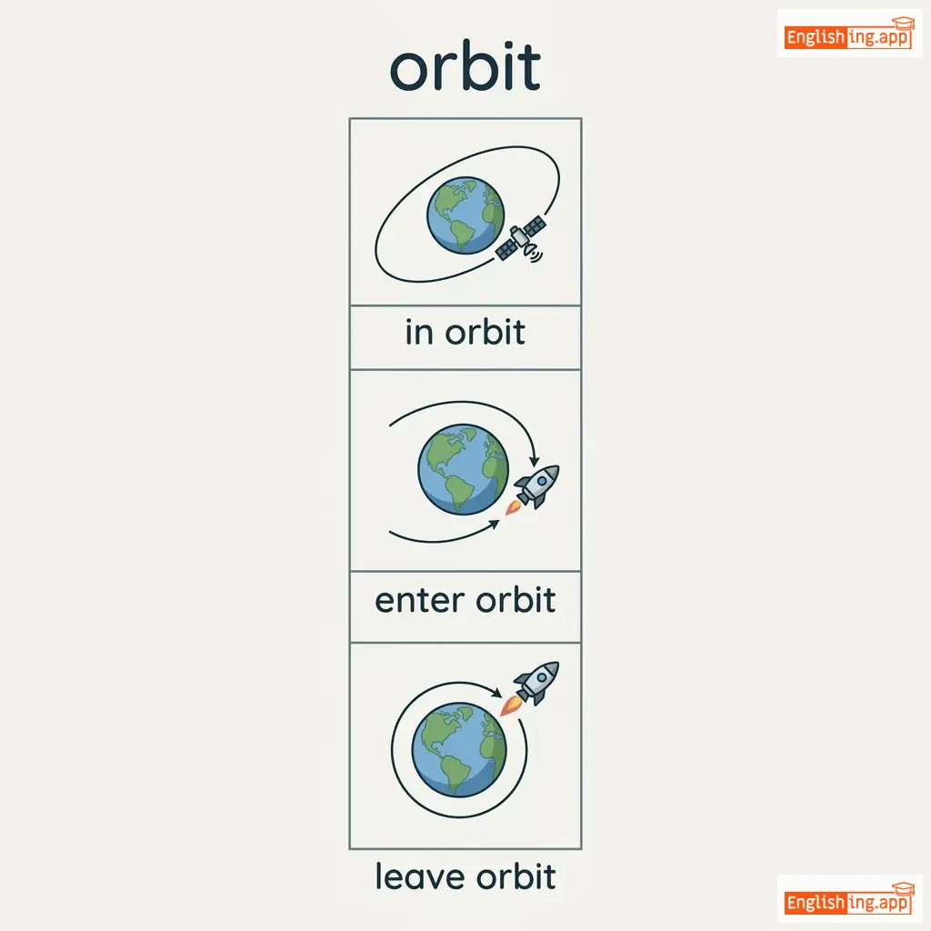 in orbit, enter orbit, leave orbit, orbit around