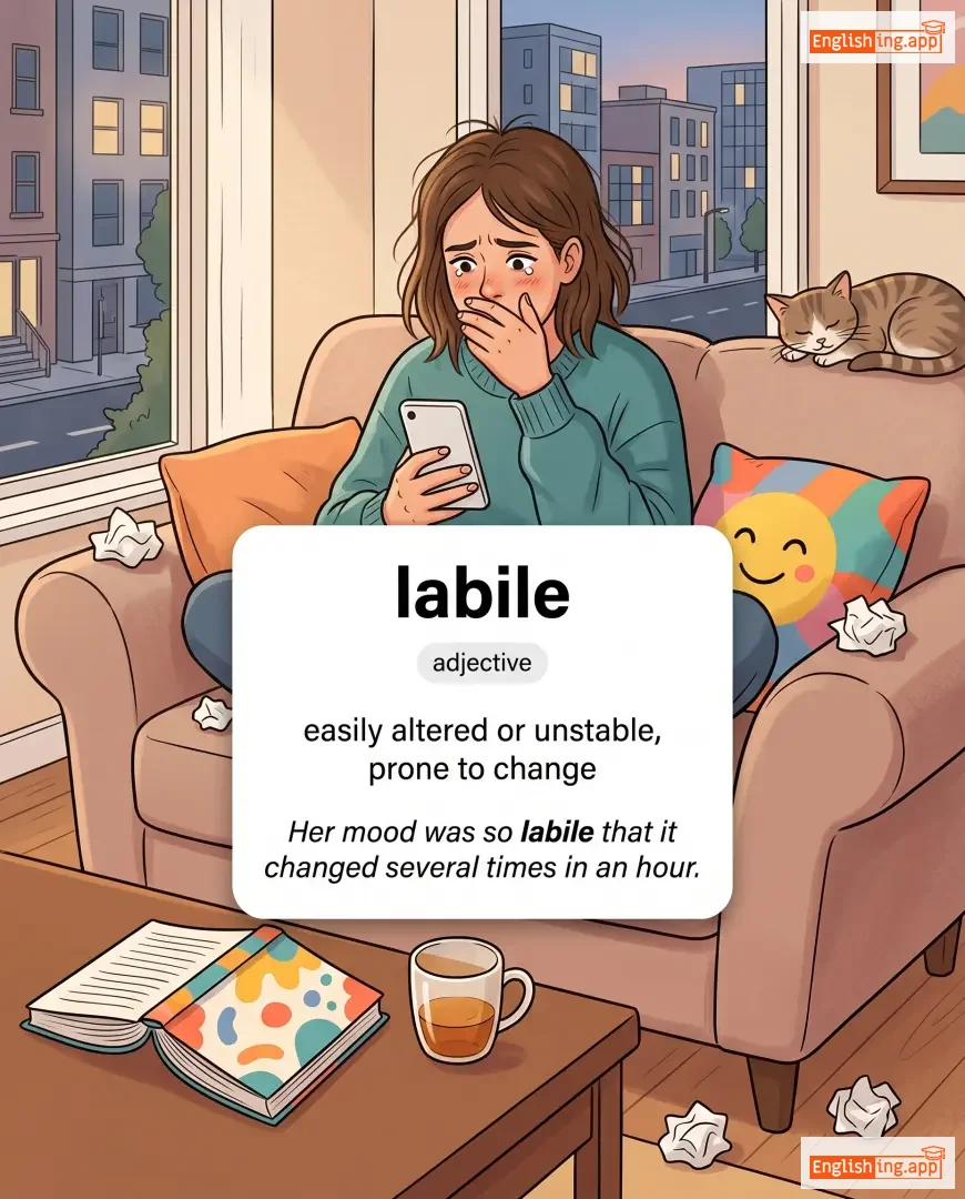 Her mood was so labile that it changed several times in an hour. |