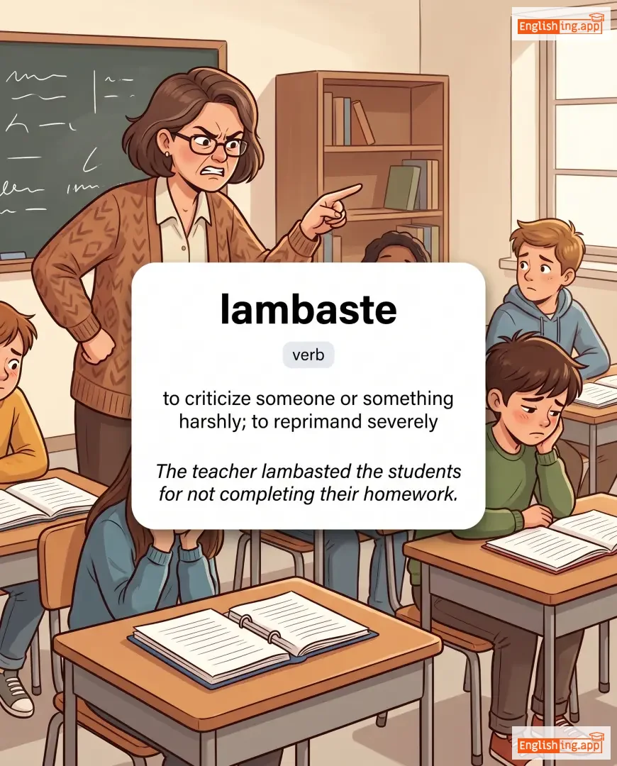 The teacher lambasted the students for not completing their homework. |