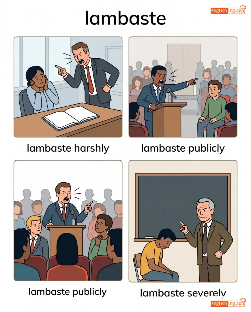 lambaste harshly, lambaste publicly, lambaste severely