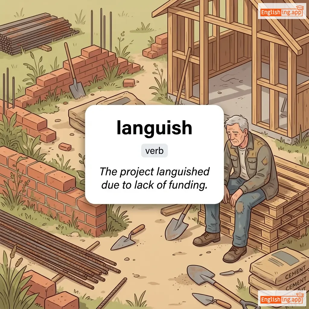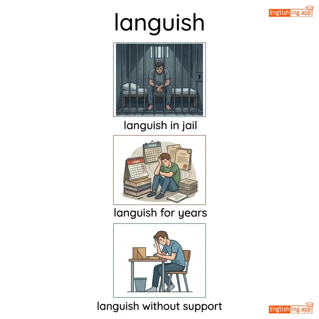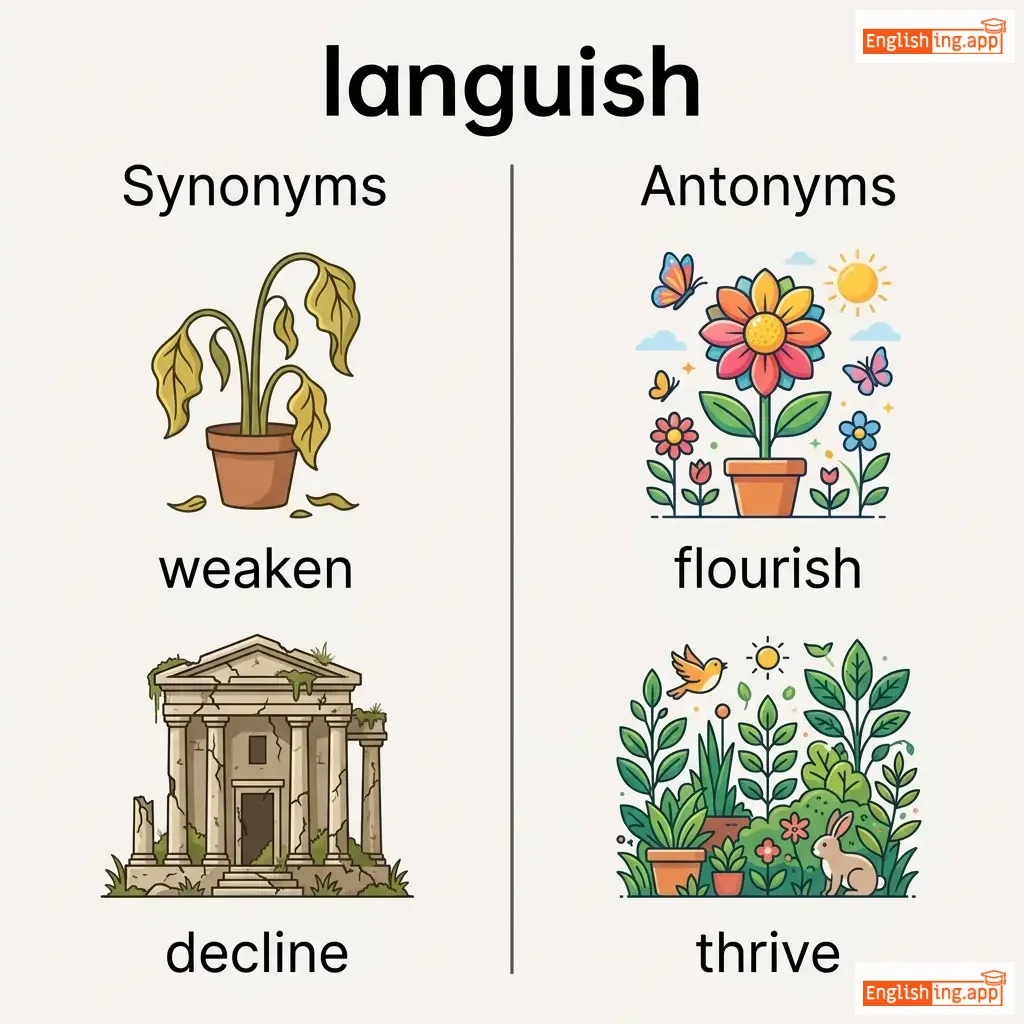To become weak or feeble; to suffer neglect or remain in an unpleasant situation for a long time.