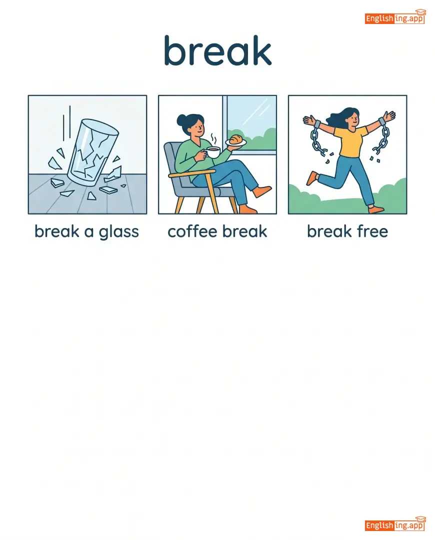 break a glass, coffee break, break free, break the law