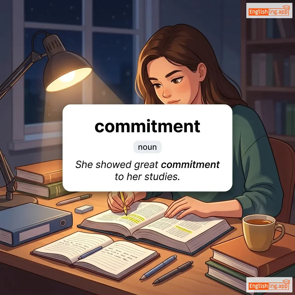 She showed great commitment to her studies. |