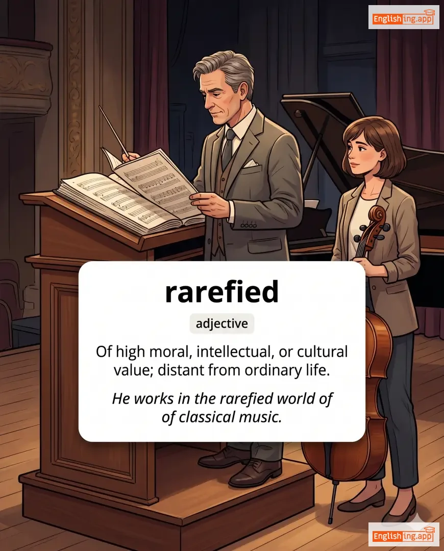 Of high moral, intellectual, or cultural value; distant from ordinary life.