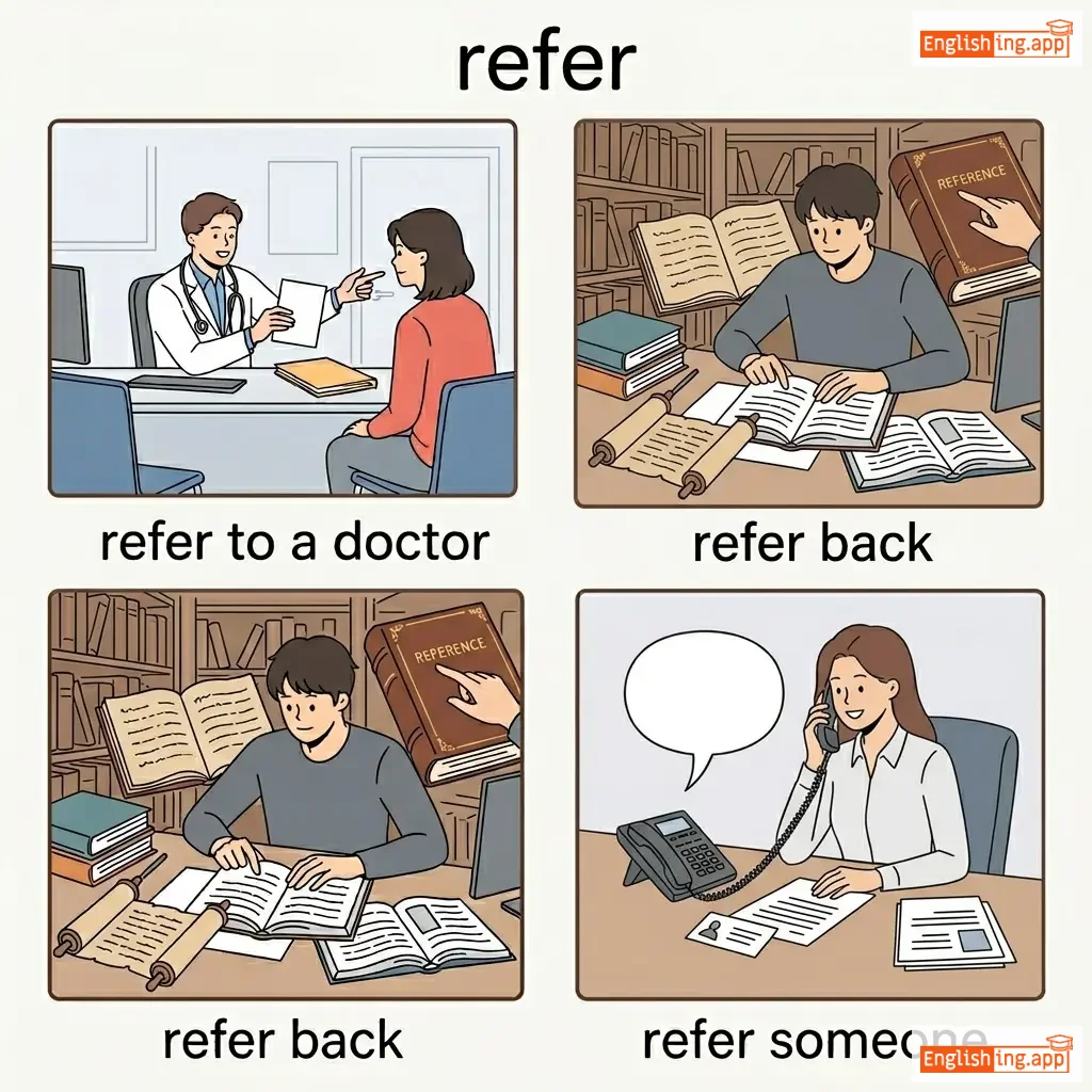 refer to a doctor, refer back, refer someone, refer directly