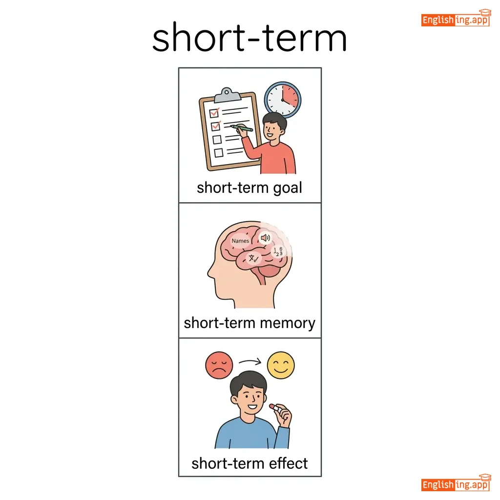 short-term goal, short-term memory, short-term effect, short-term plan
