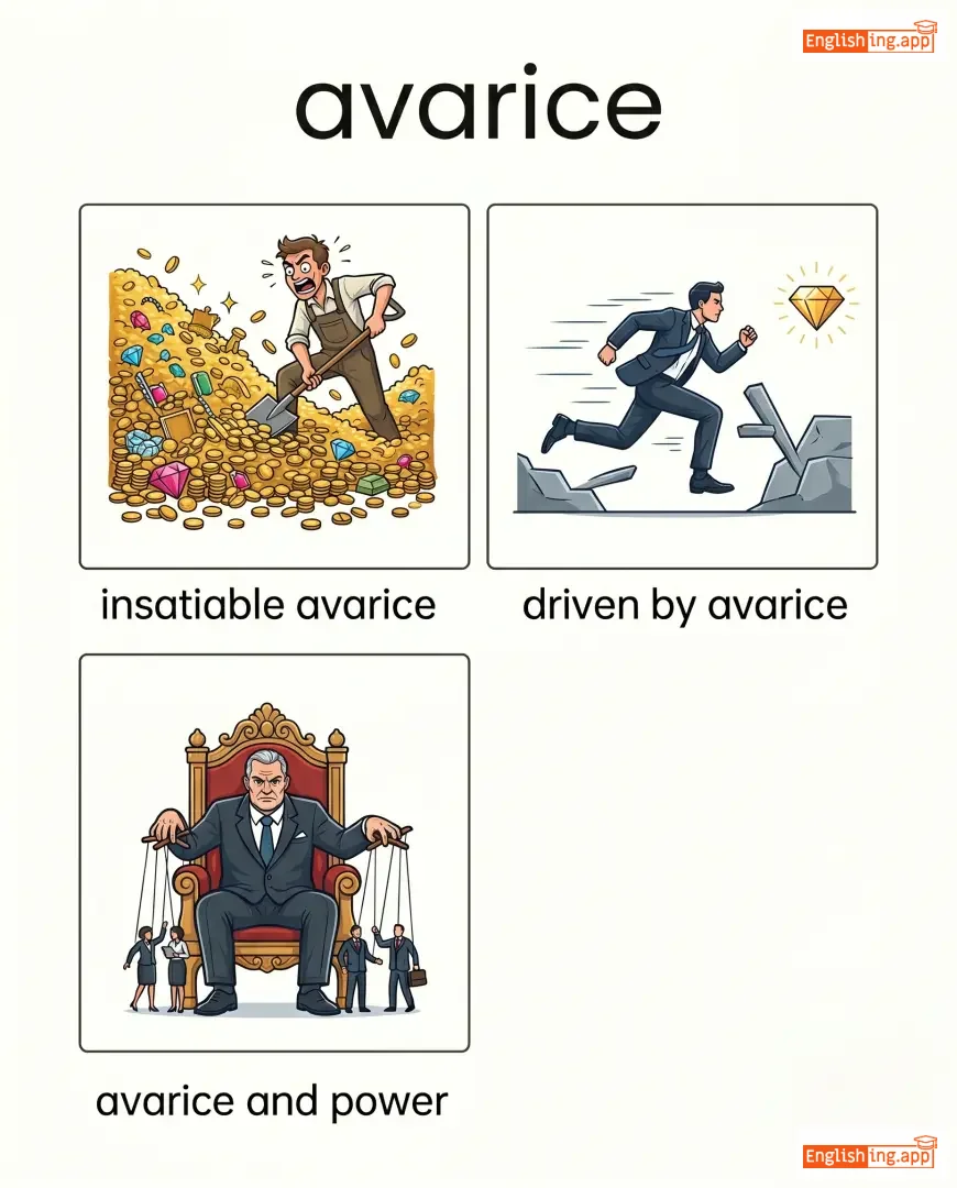 insatiable avarice, driven by avarice, avarice and power, human avarice
