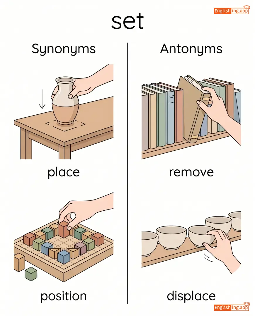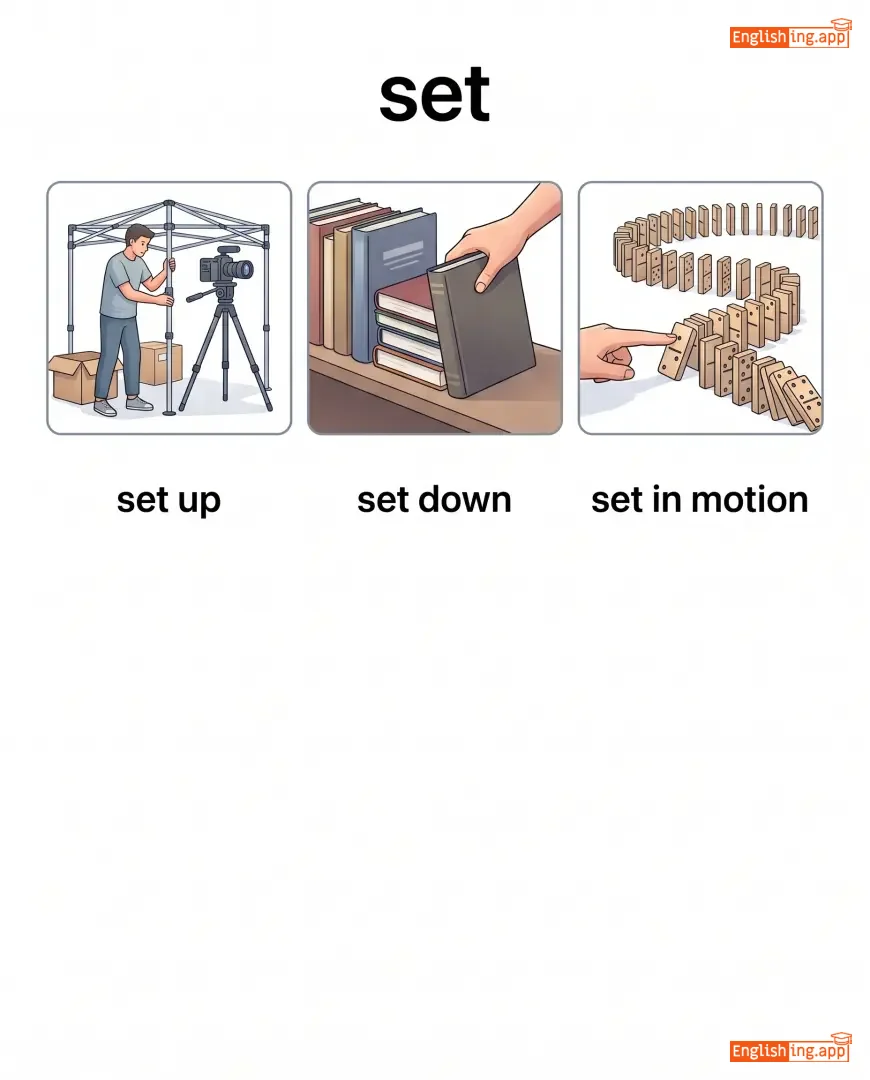 set aside, set up, set down, set off, set the table