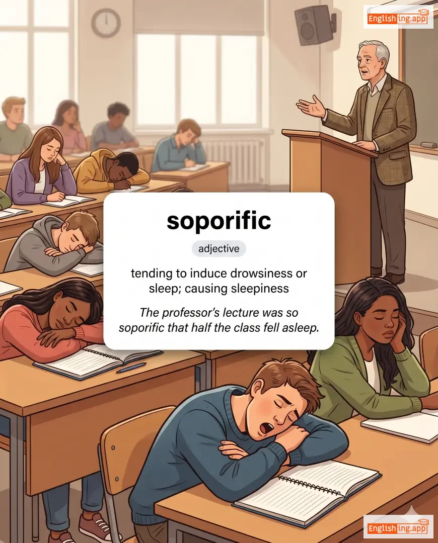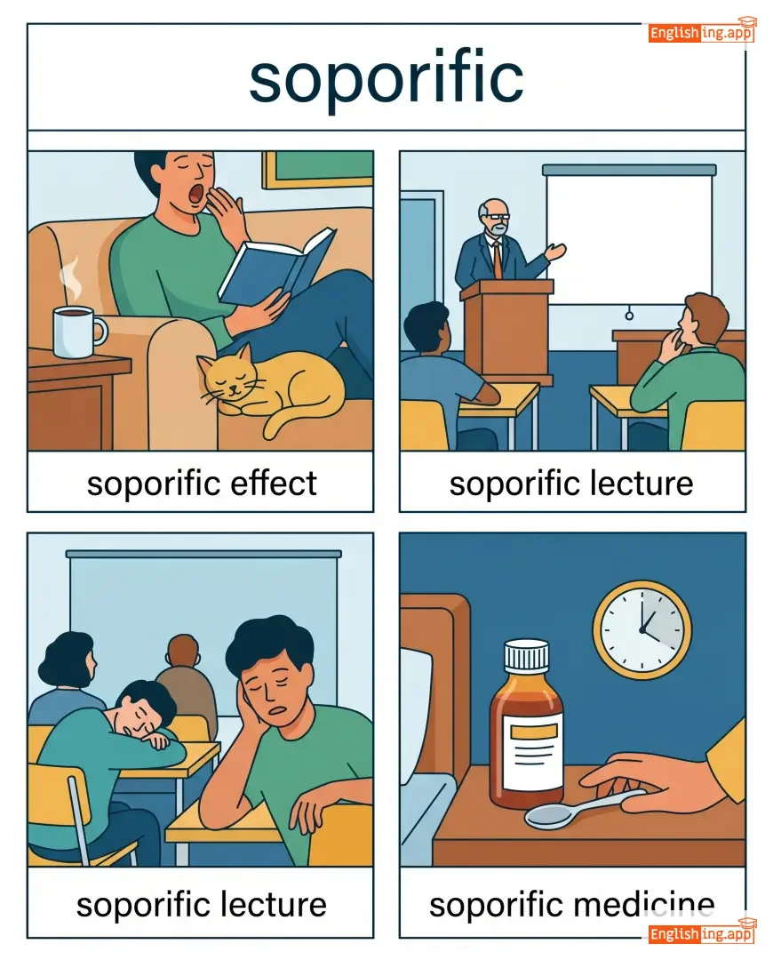 soporific effect, soporific lecture, soporific medicine, soporific atmosphere