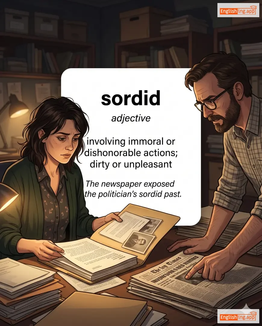 The newspaper exposed the politician's sordid past. |