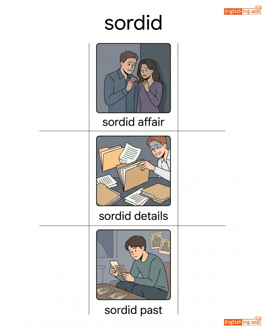 sordid affair, sordid details, sordid past, sordid scandal