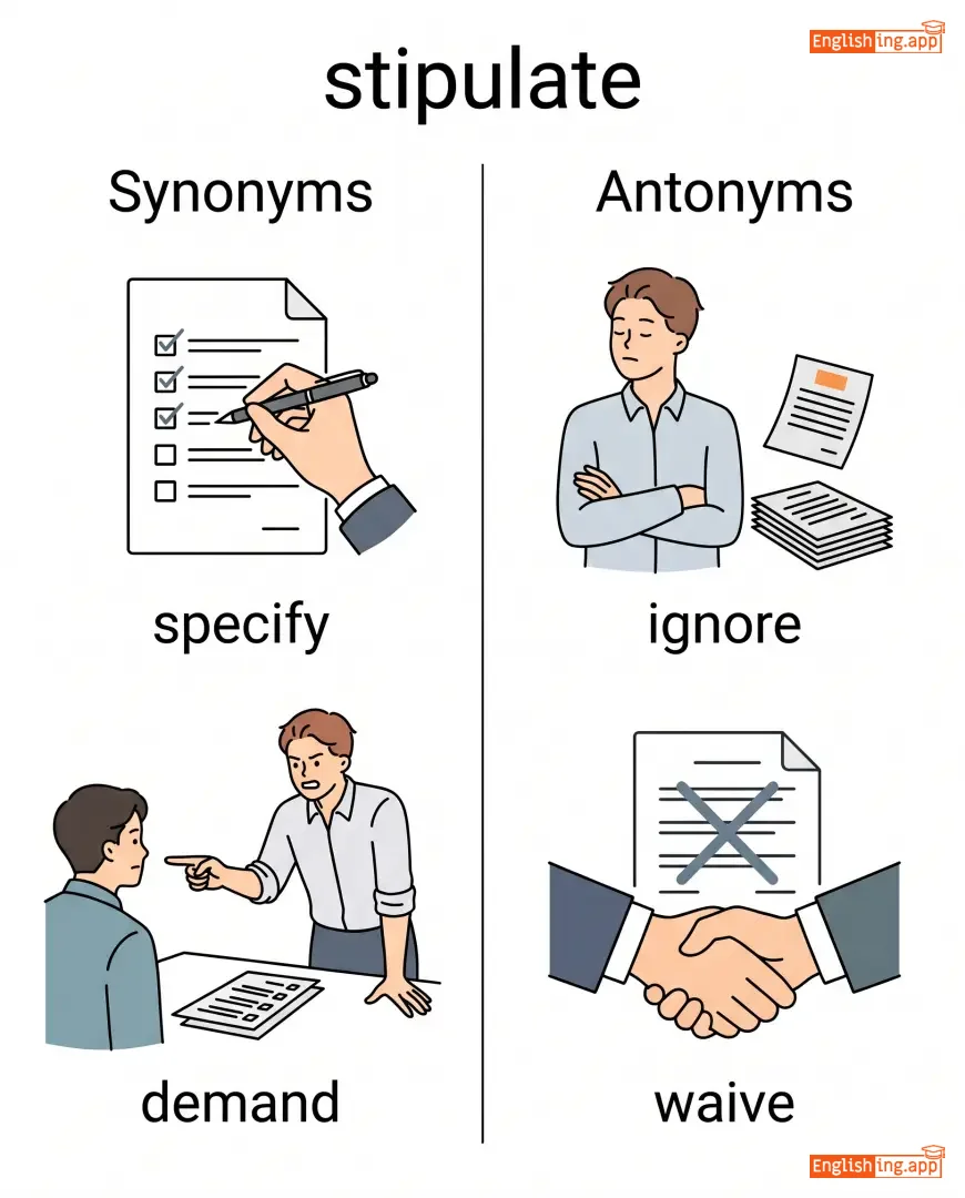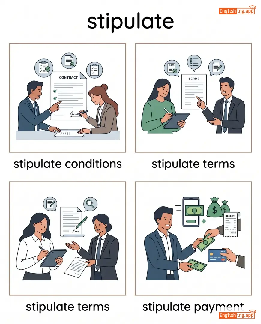 stipulate conditions, stipulate terms, stipulate payment, stipulate requirement