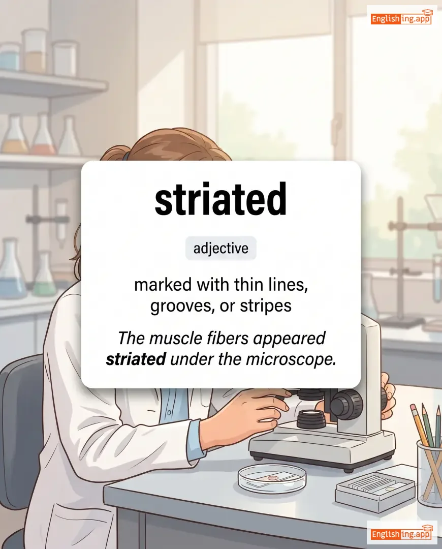 marked with thin lines, grooves, or stripes