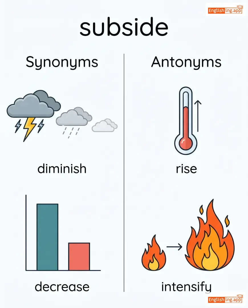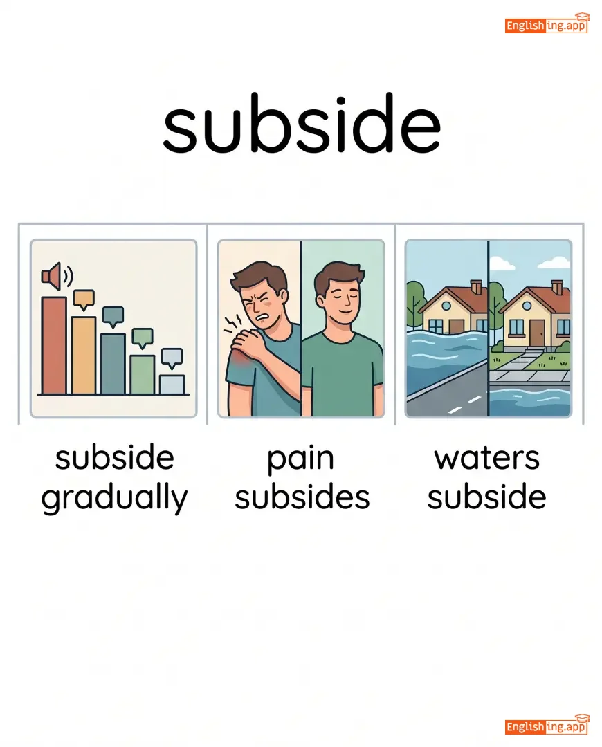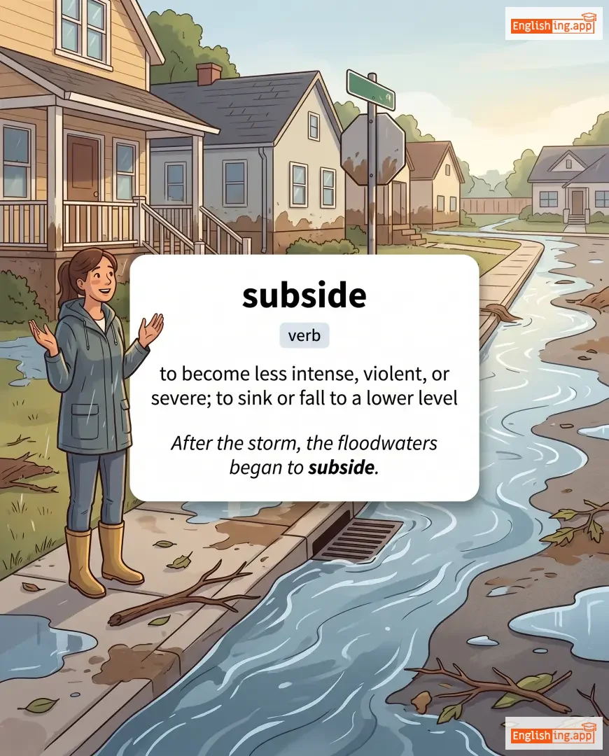 to become less intense, violent, or severe; to sink or fall to a lower level