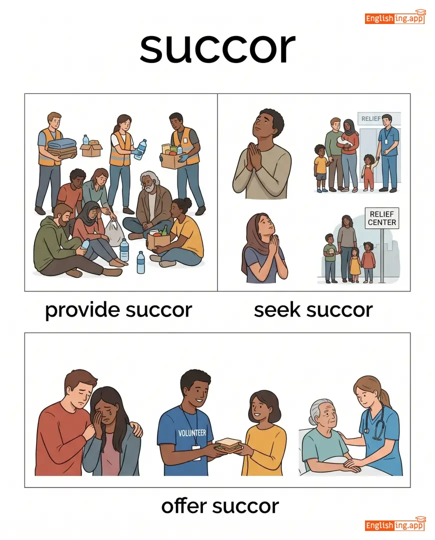 provide succor, seek succor, offer succor, succor the needy