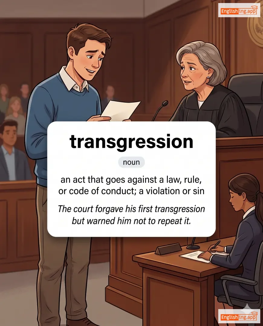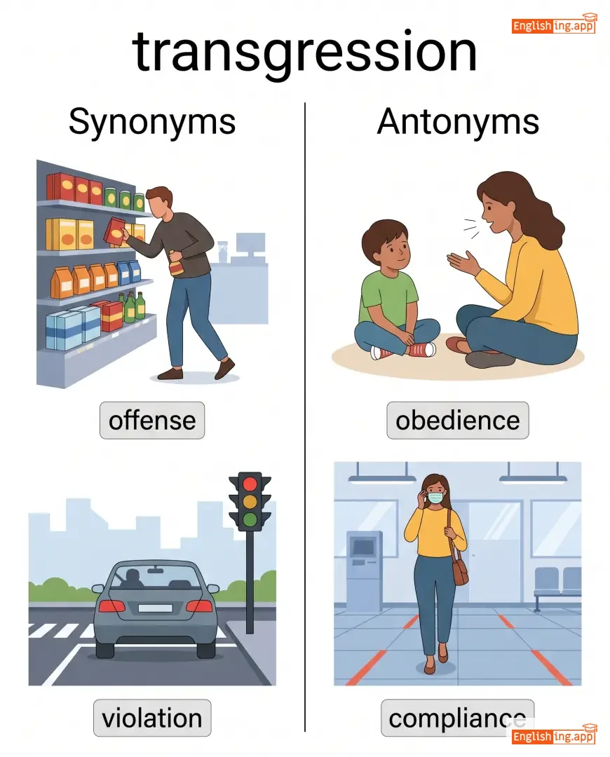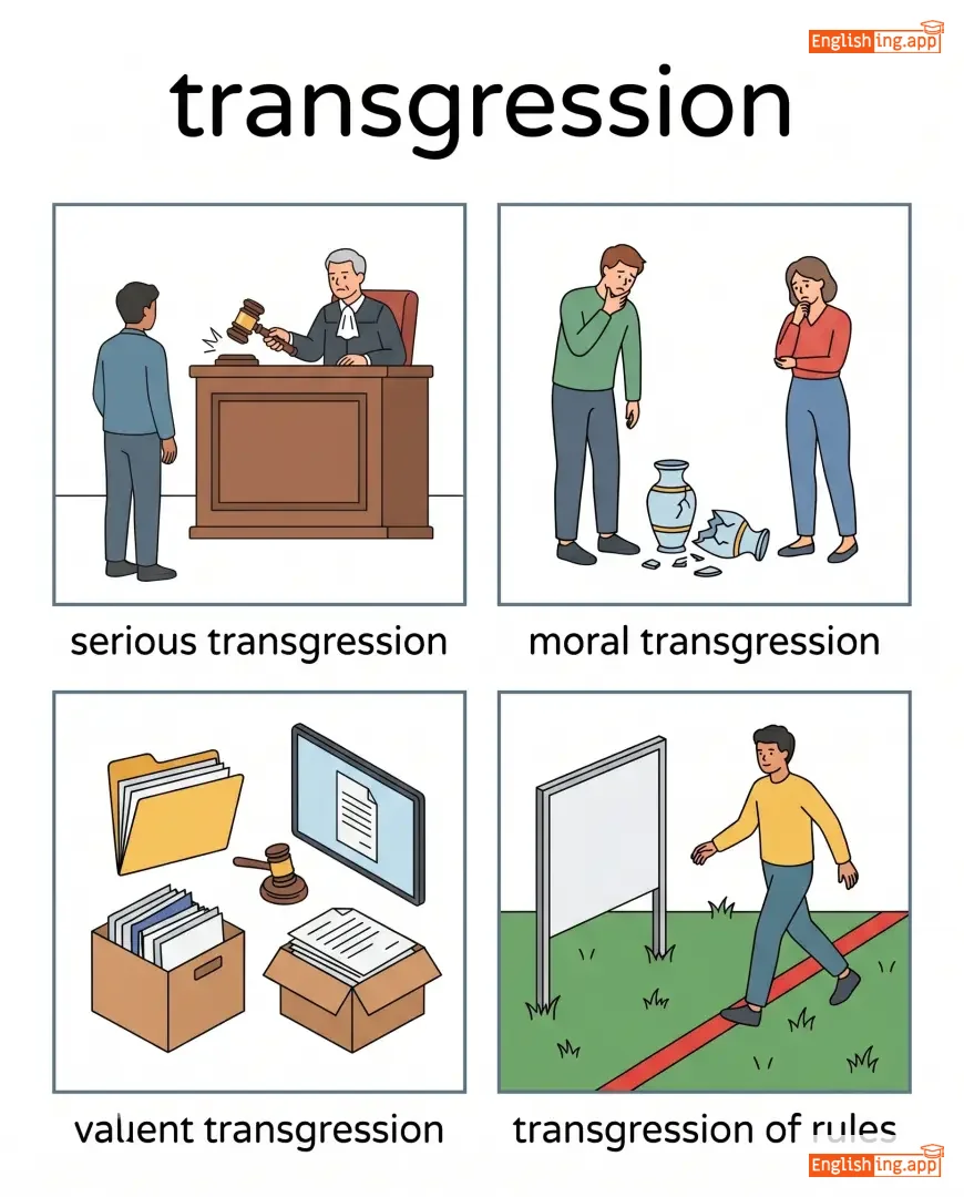 an act that goes against a law, rule, or code of conduct; a violation or sin
