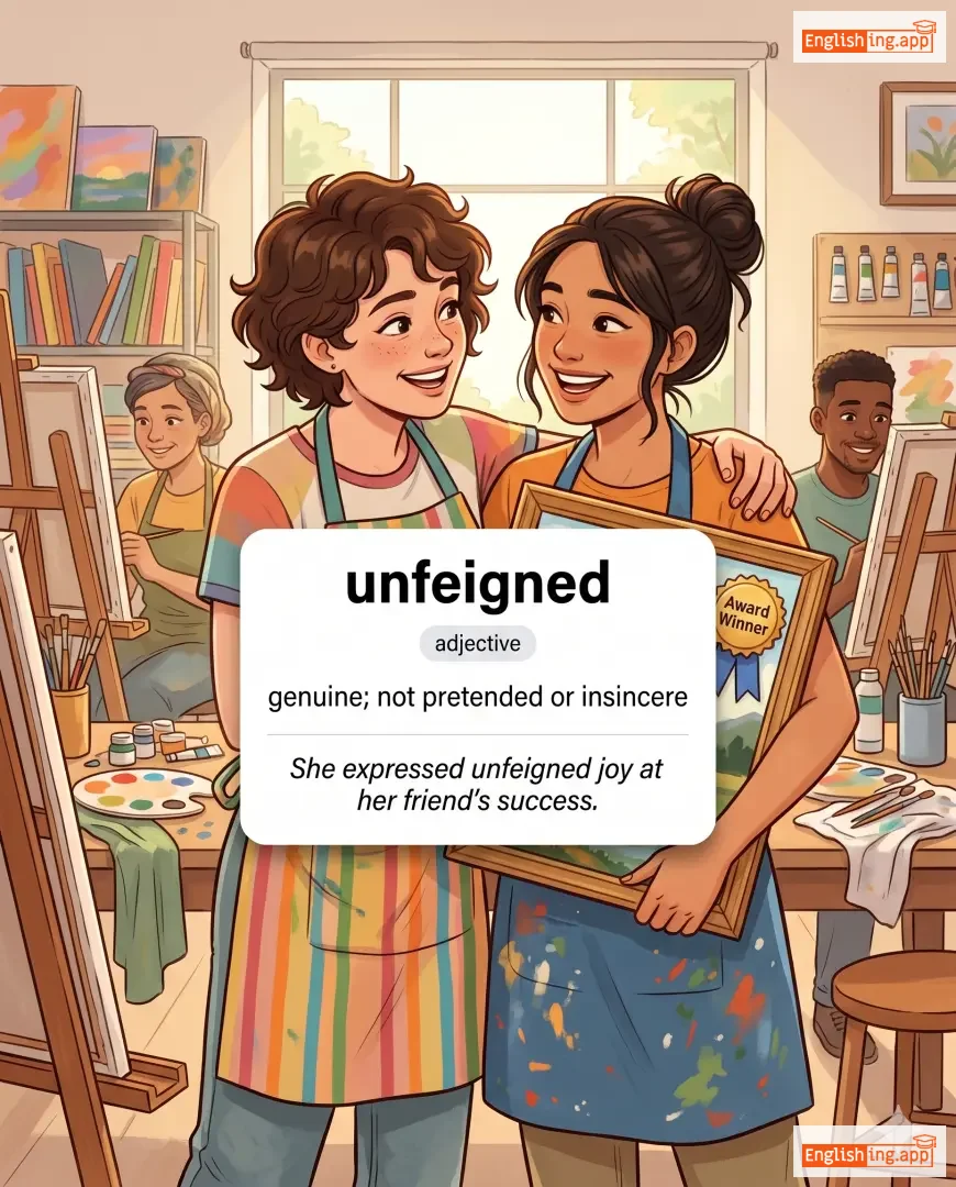 She expressed unfeigned joy at her friend's success. |