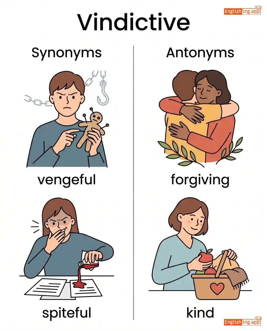 vindictive nature, vindictive remark, vindictive behavior