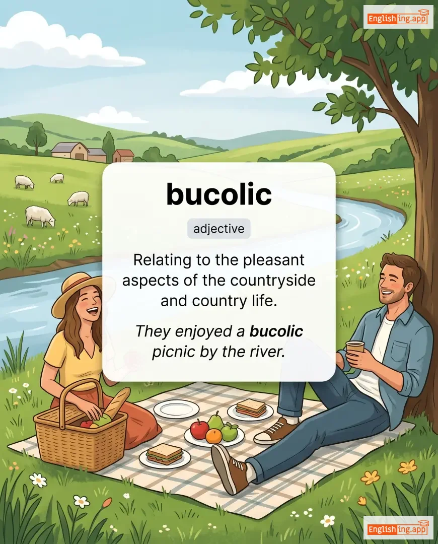 They enjoyed a bucolic picnic by the river. |
