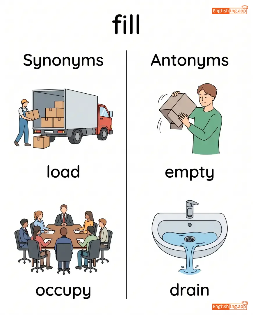 Word | Images | Past | Past Participle | Third Person Singular | Gerund | Meaning | Example Sentence | Example Expression | Example Expression Meaning | Synonyms | Antonyms | Collocations |