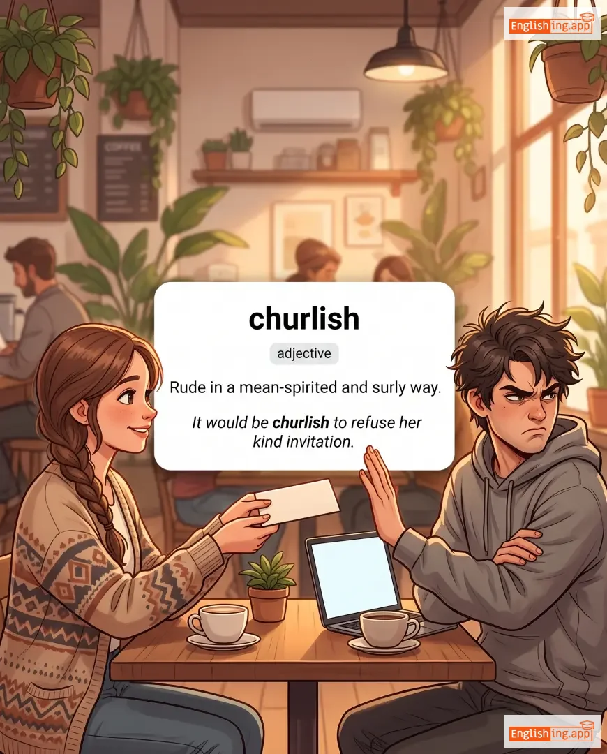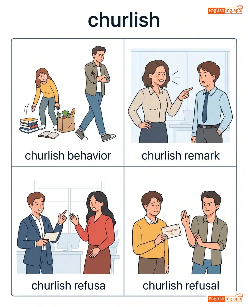 churlish behavior, churlish remark, churlish refusal, act churlish