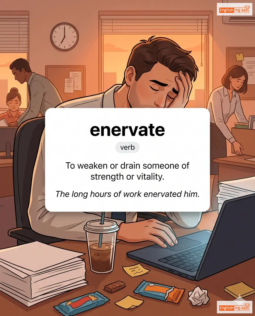 The long hours of work enervated him. |