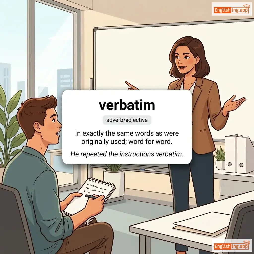 She repeated his speech verbatim without changing a single word. |