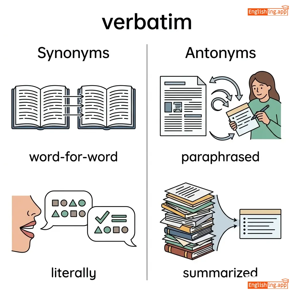 verbatim quote, verbatim record, verbatim transcript