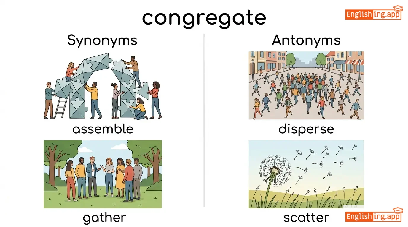 congregate in, congregate outside, congregate together