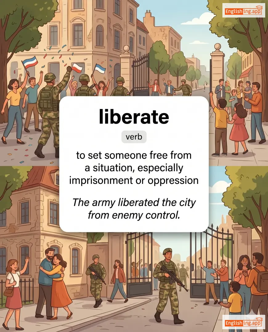 to set someone free from a situation, especially imprisonment or oppression
