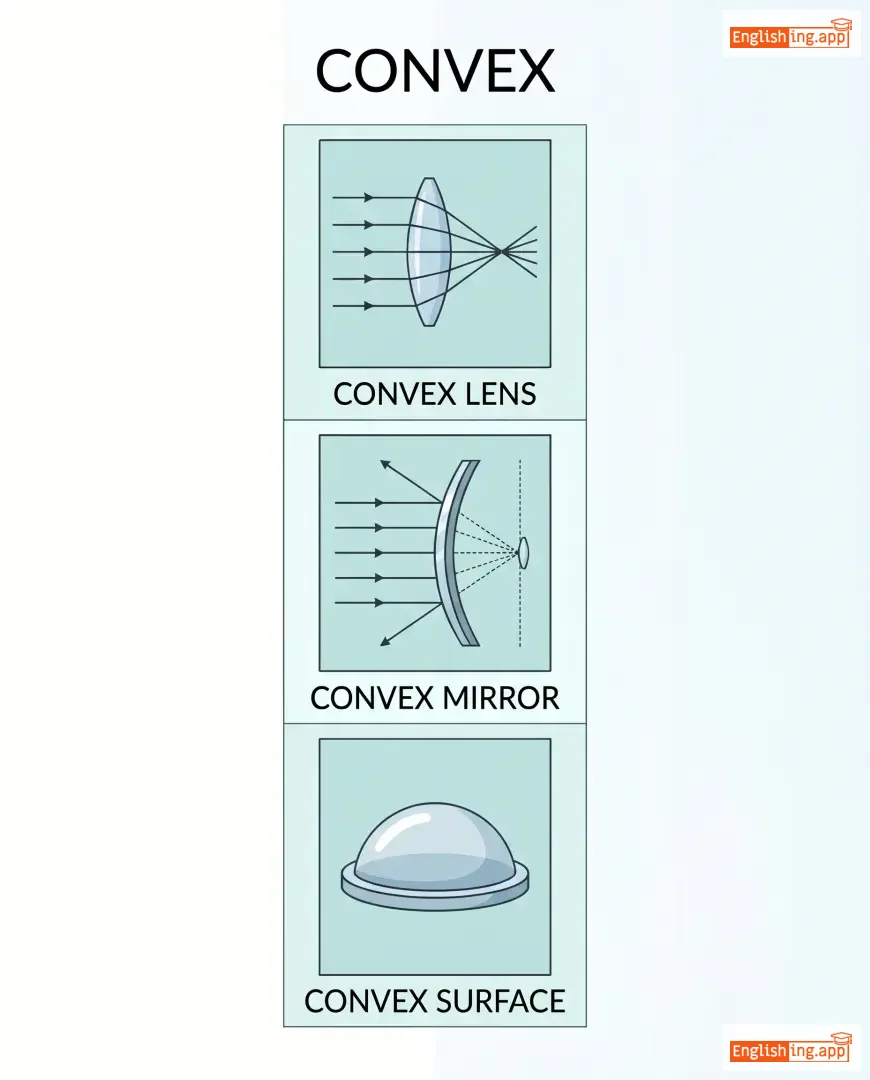 convex lens, convex mirror, convex surface