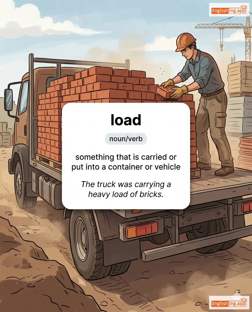 The truck was carrying a heavy load of bricks. |