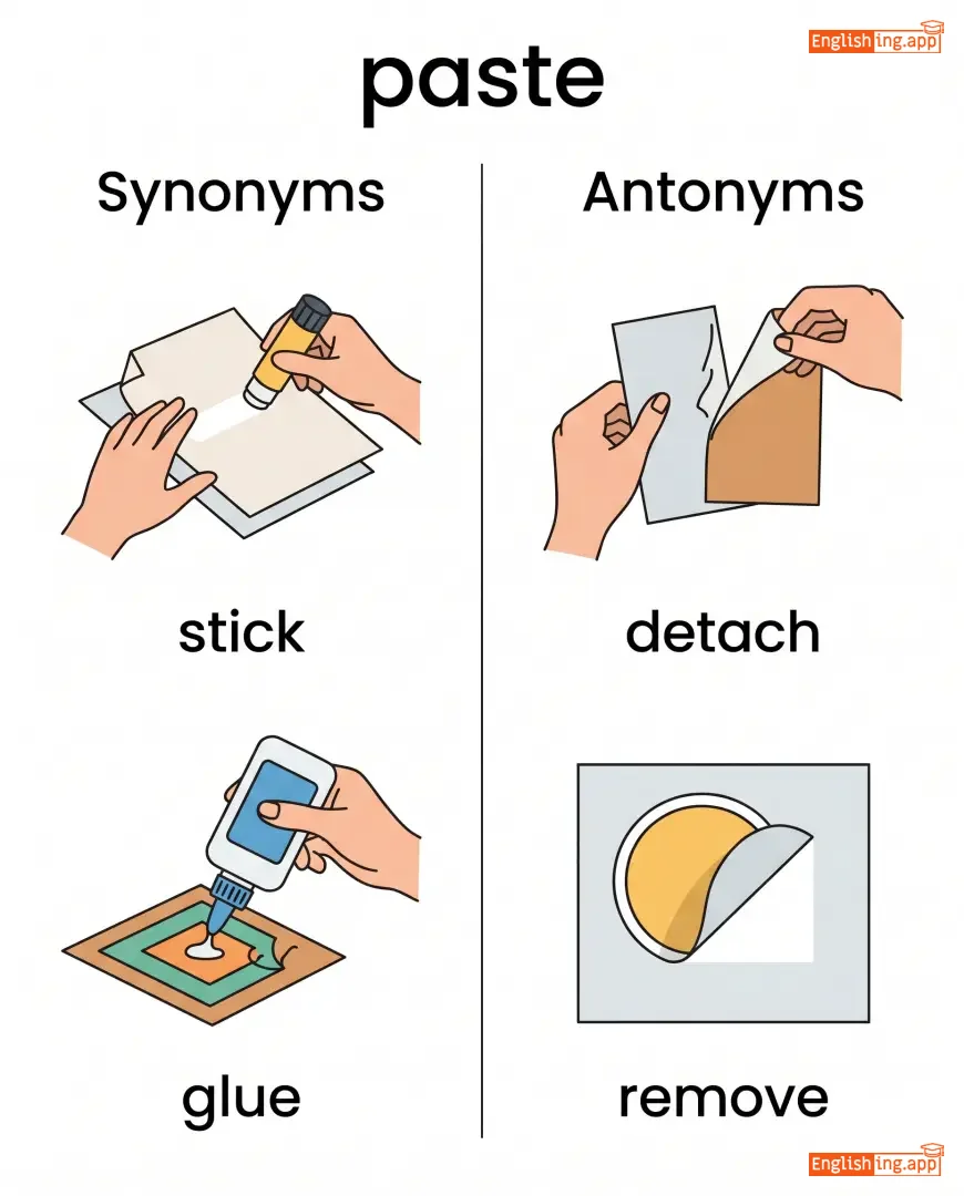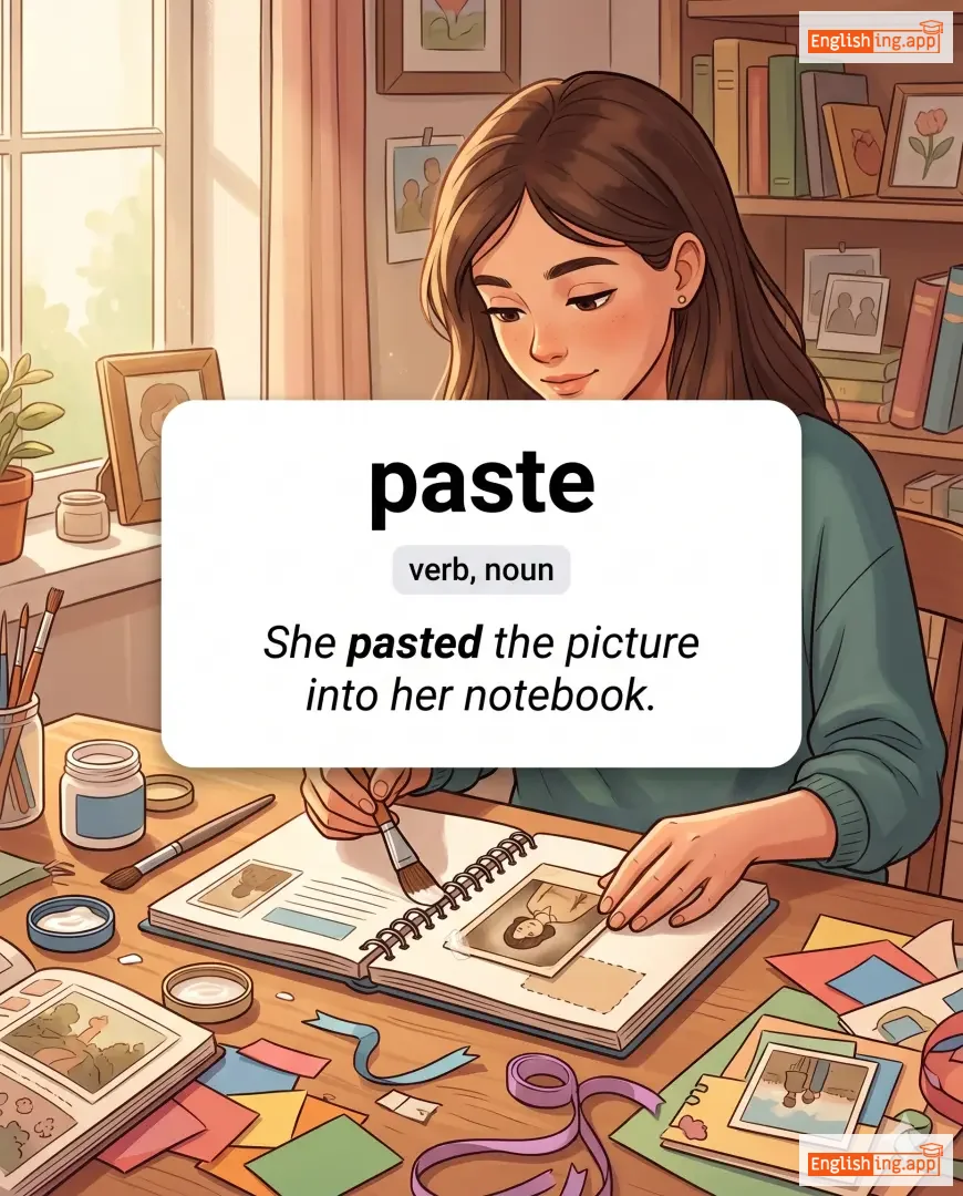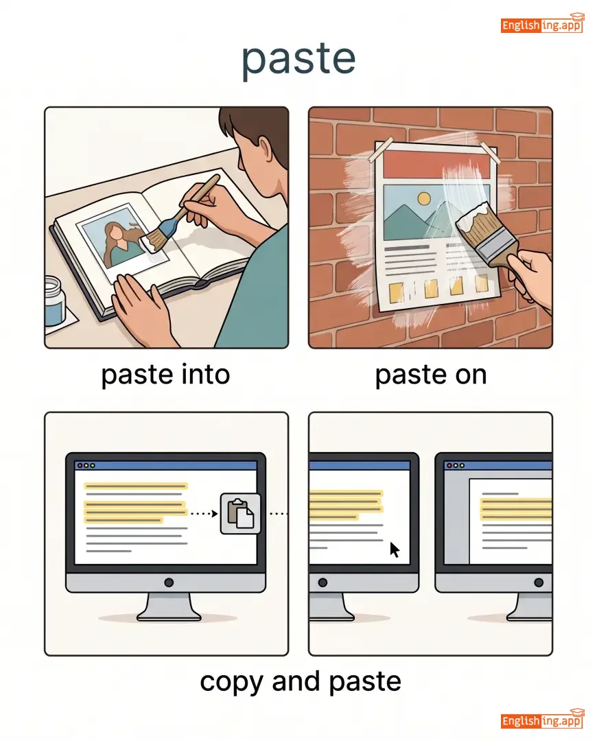 to stick or attach something using a soft, moist substance; also a thick, soft, moist substance itself