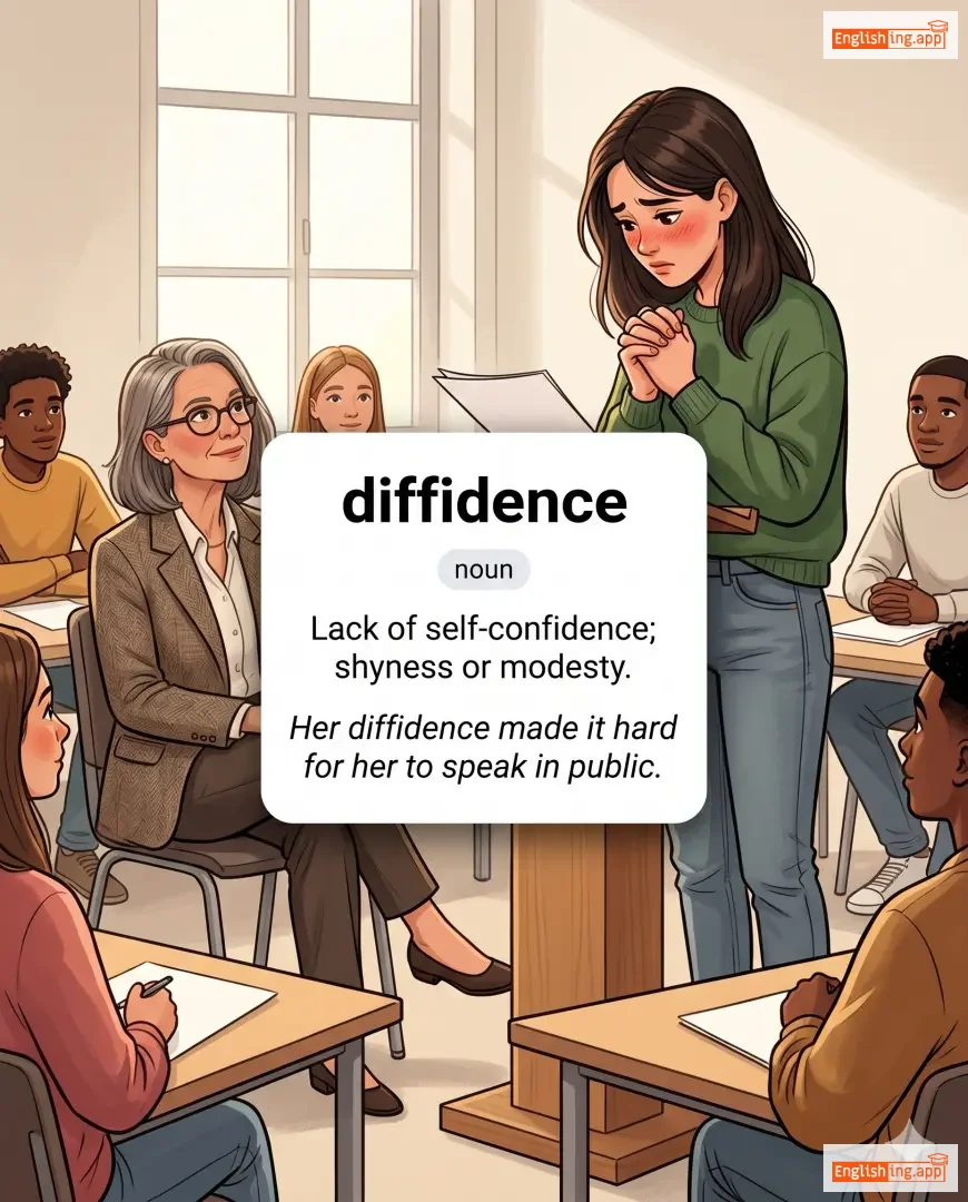Her diffidence made it hard for her to speak in public. |