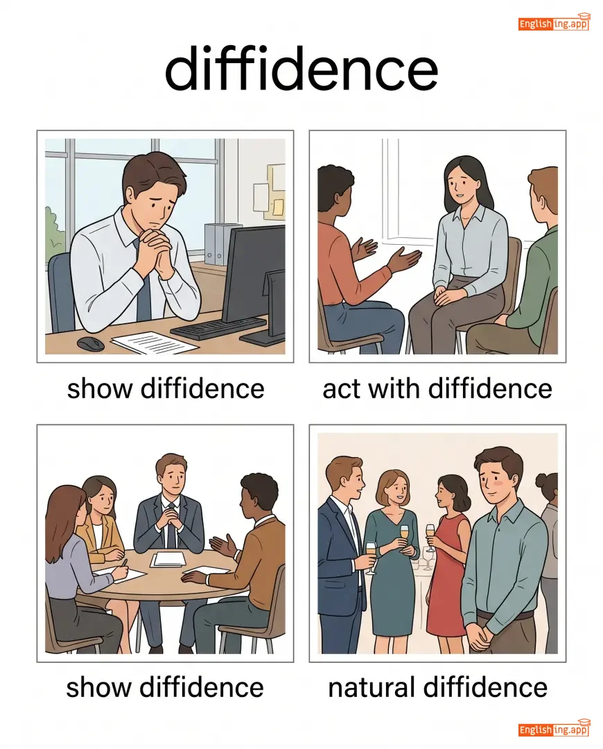 show diffidence, act with diffidence, natural diffidence