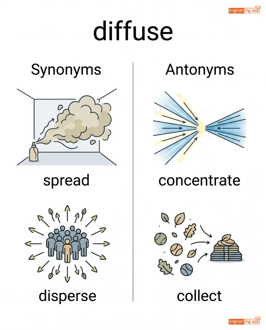 diffuse light, diffuse smell, diffuse gas, diffuse conflict