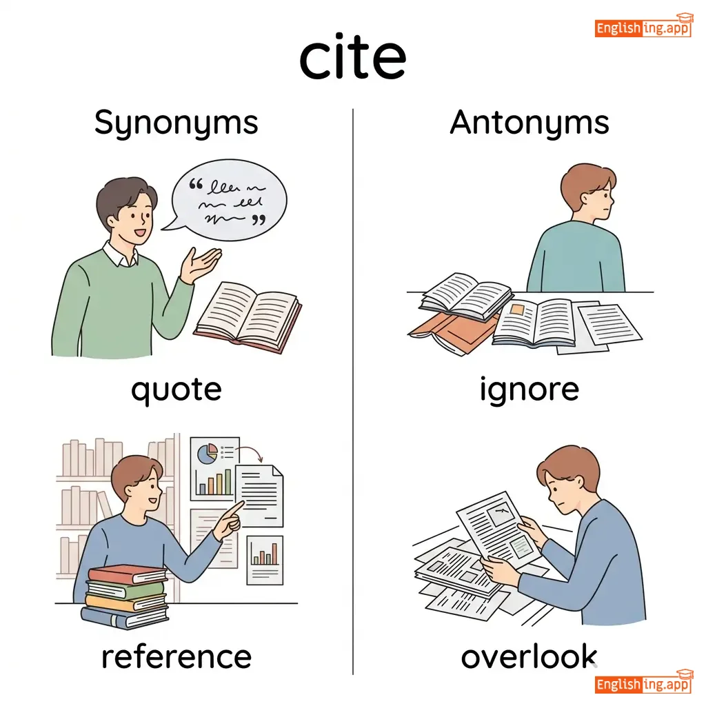 cite, repeat, reference, mention