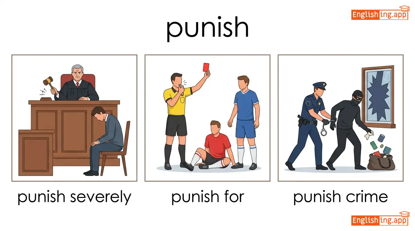 punish severely, punish for, punish crime, punish wrongdoer