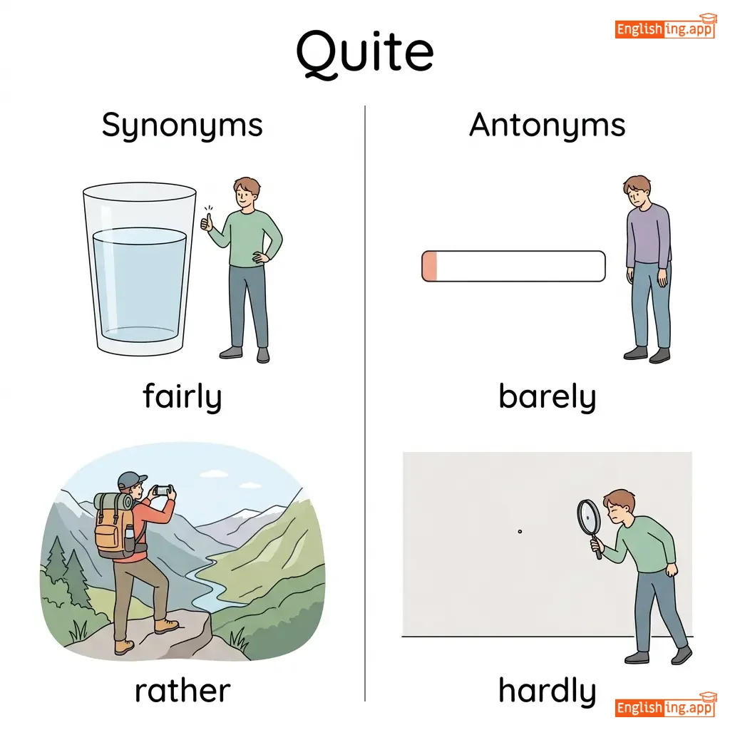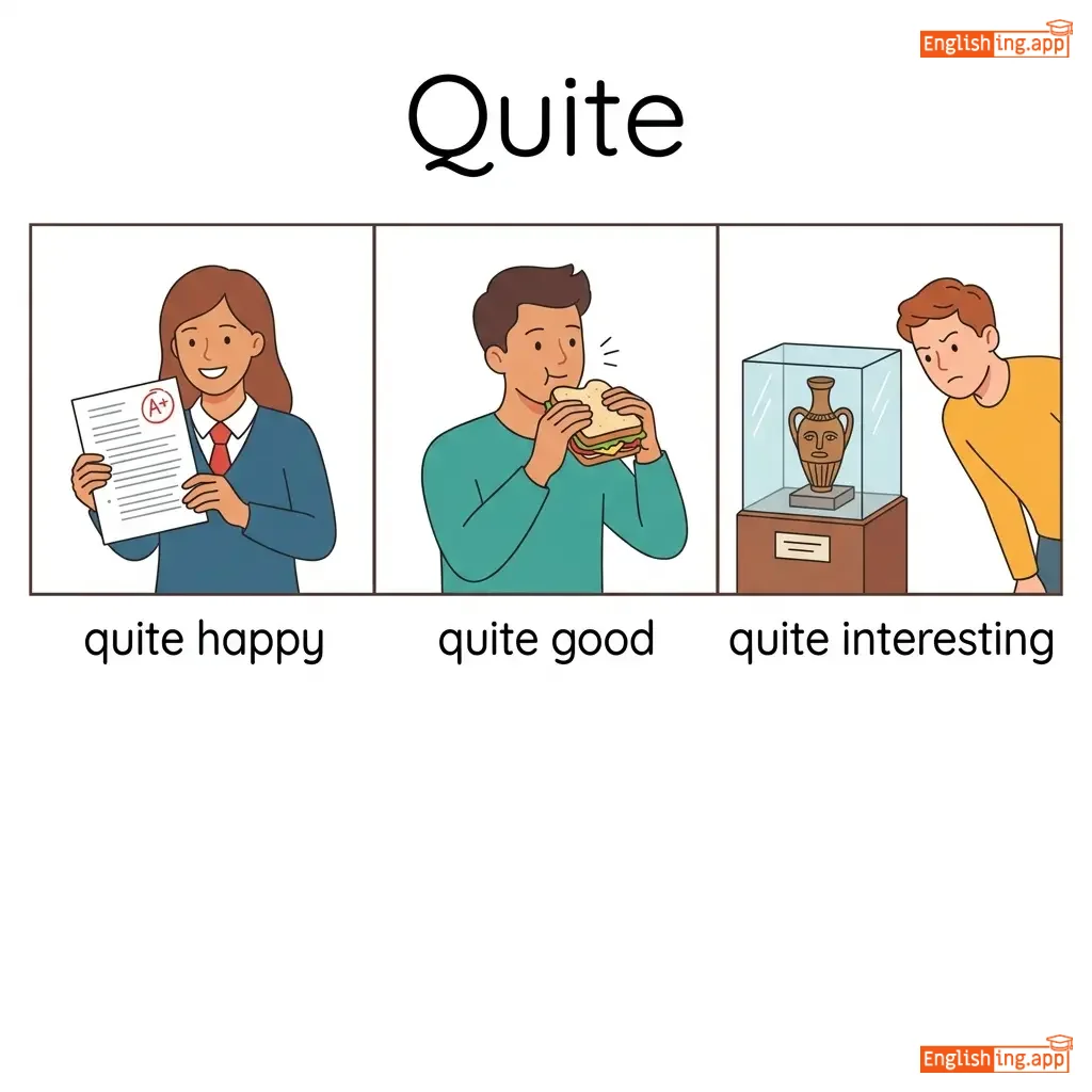 quite happy, quite good, quite interesting, not quite