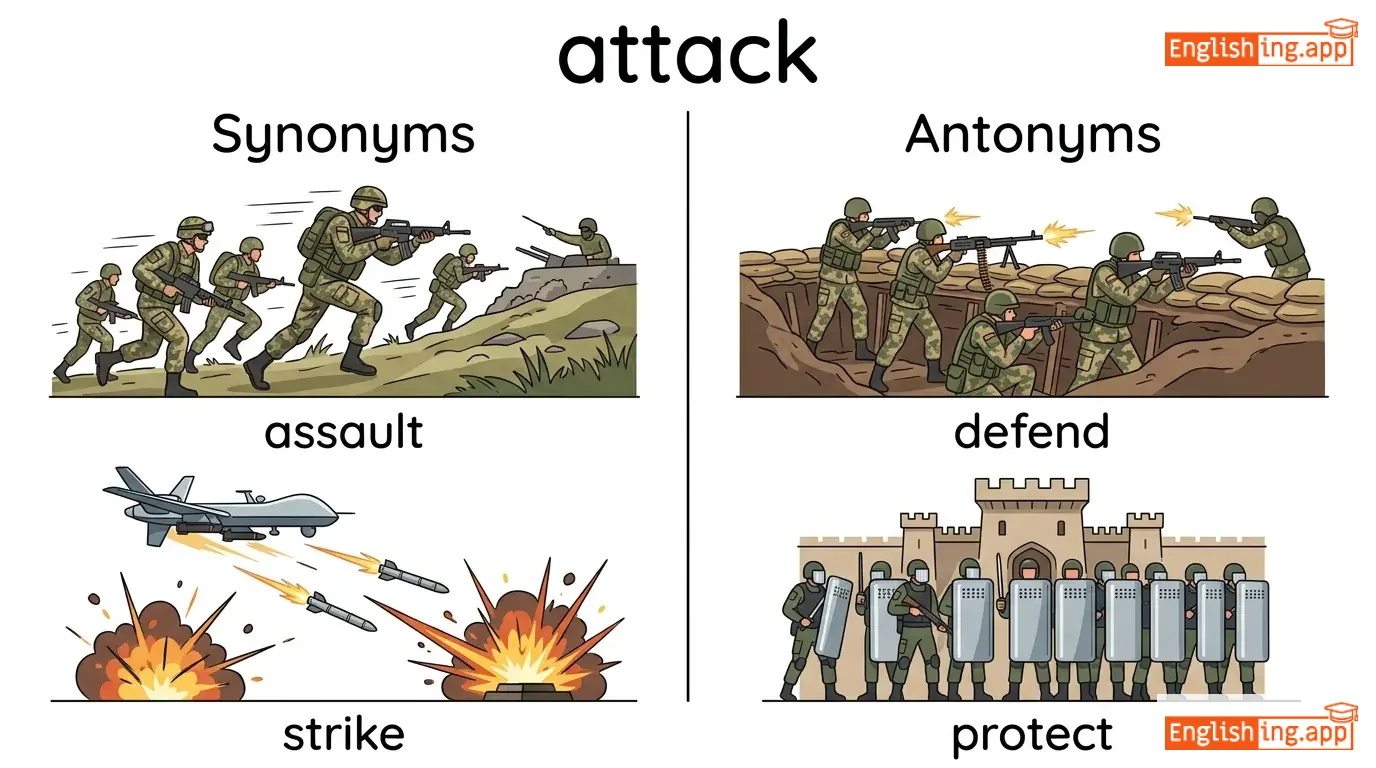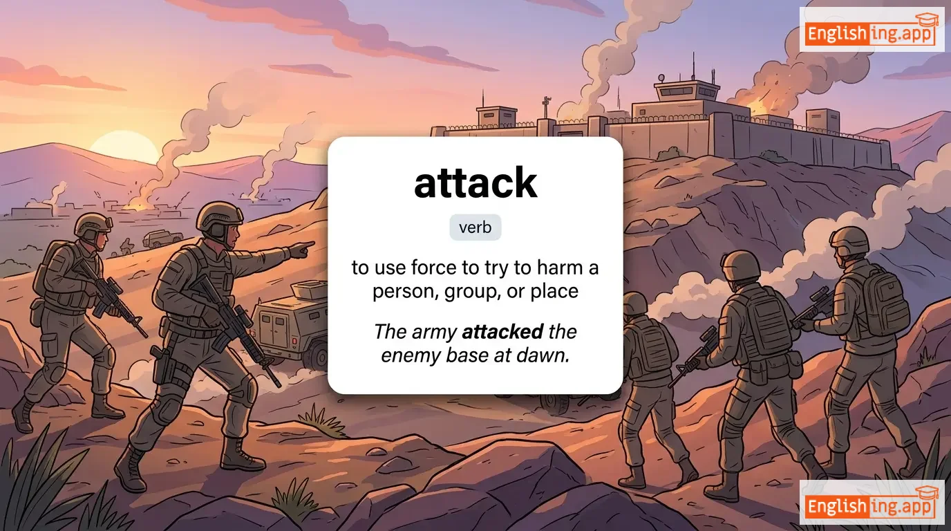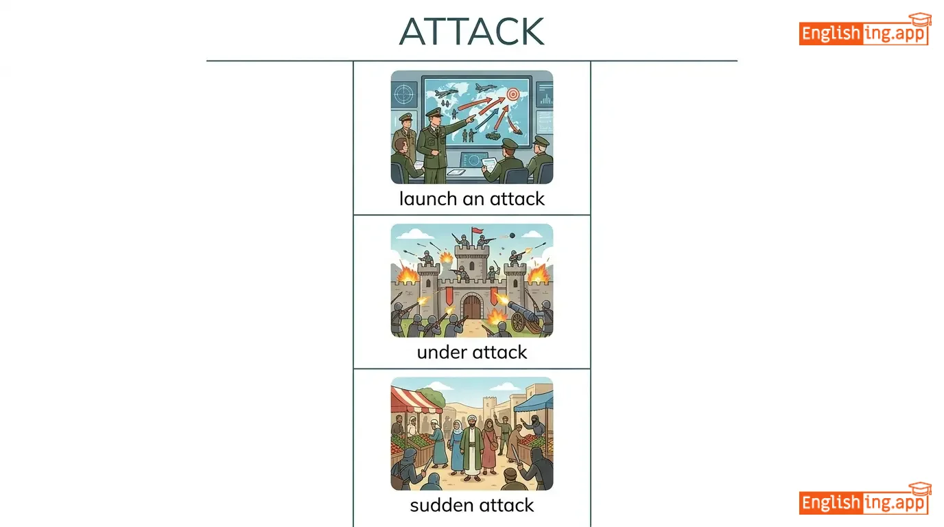 attacked violently, attacked suddenly, attacked the enemy, attacked online