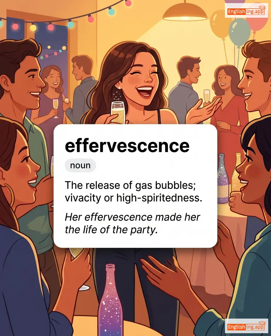 bubbling, fizz, liveliness, sparkle, vibrancy