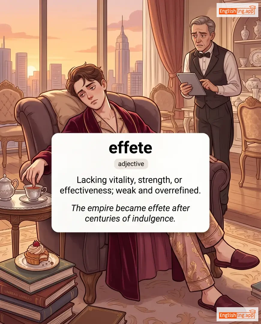 Lacking vitality, strength, or effectiveness; weak and overrefined.