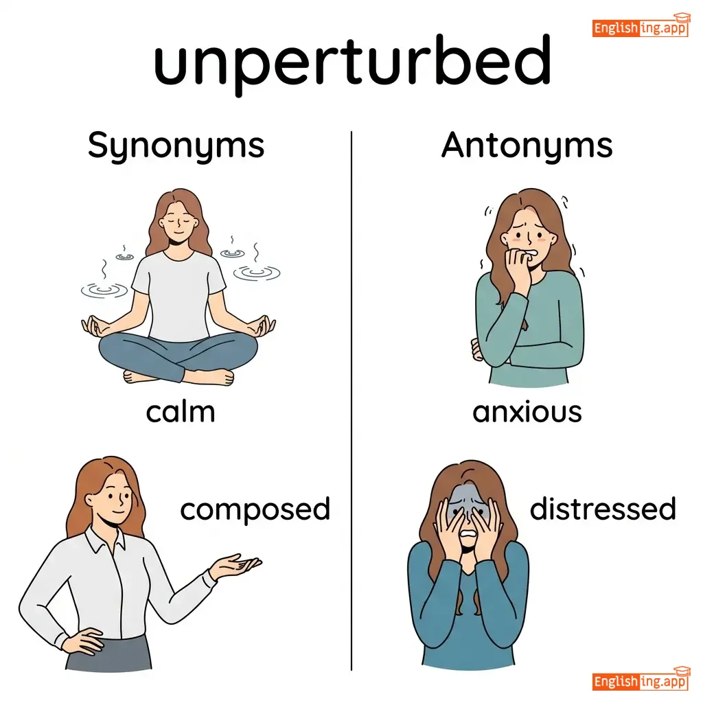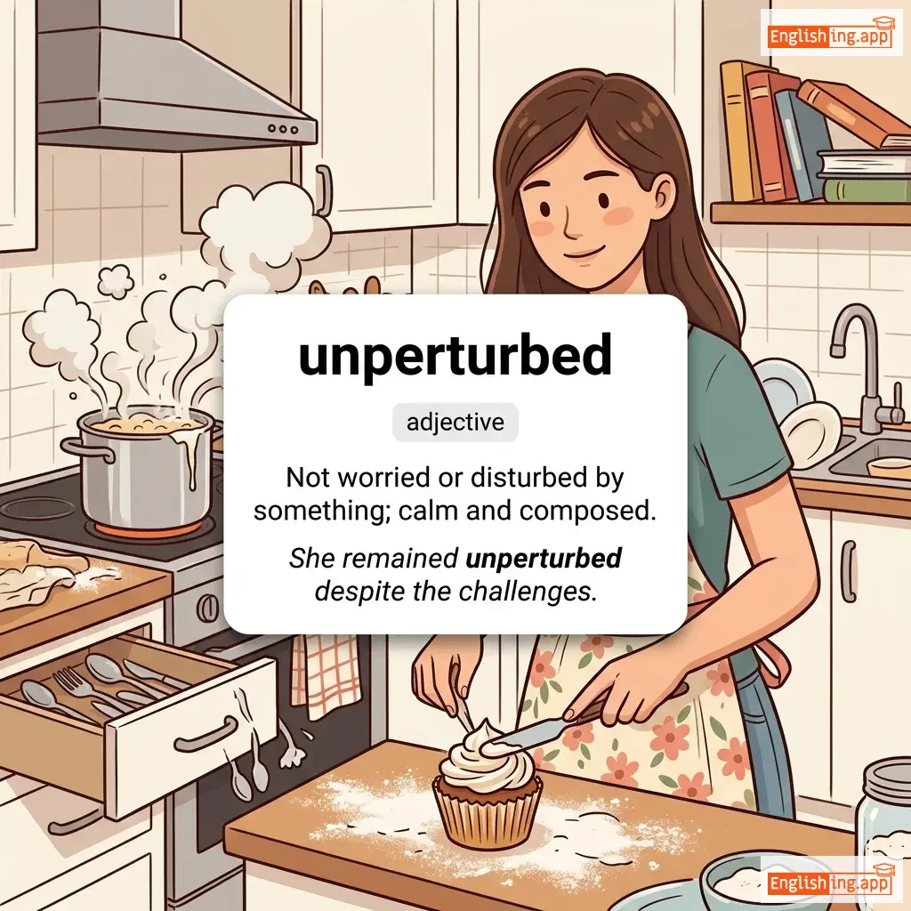 Unperturbed - оставаться спокойным, несмотря на трудности.