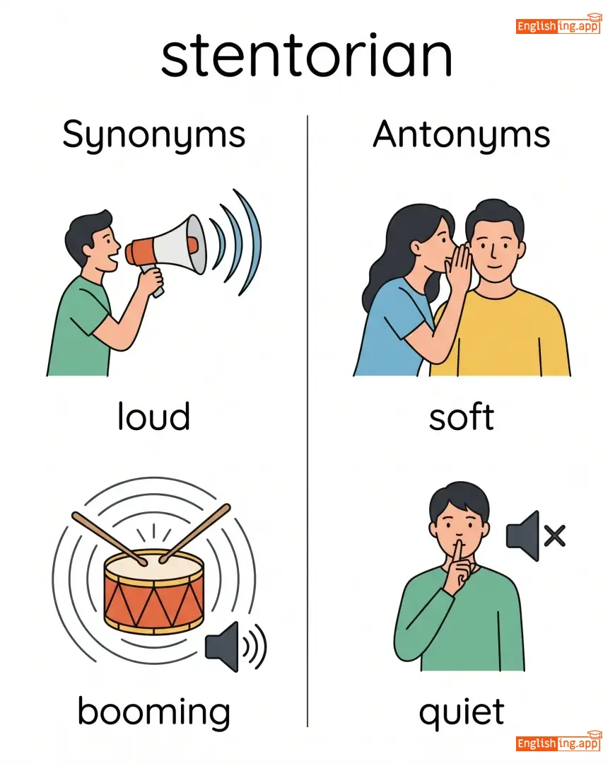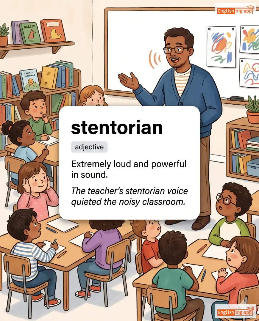 The teacher’s stentorian voice quieted the noisy classroom. |