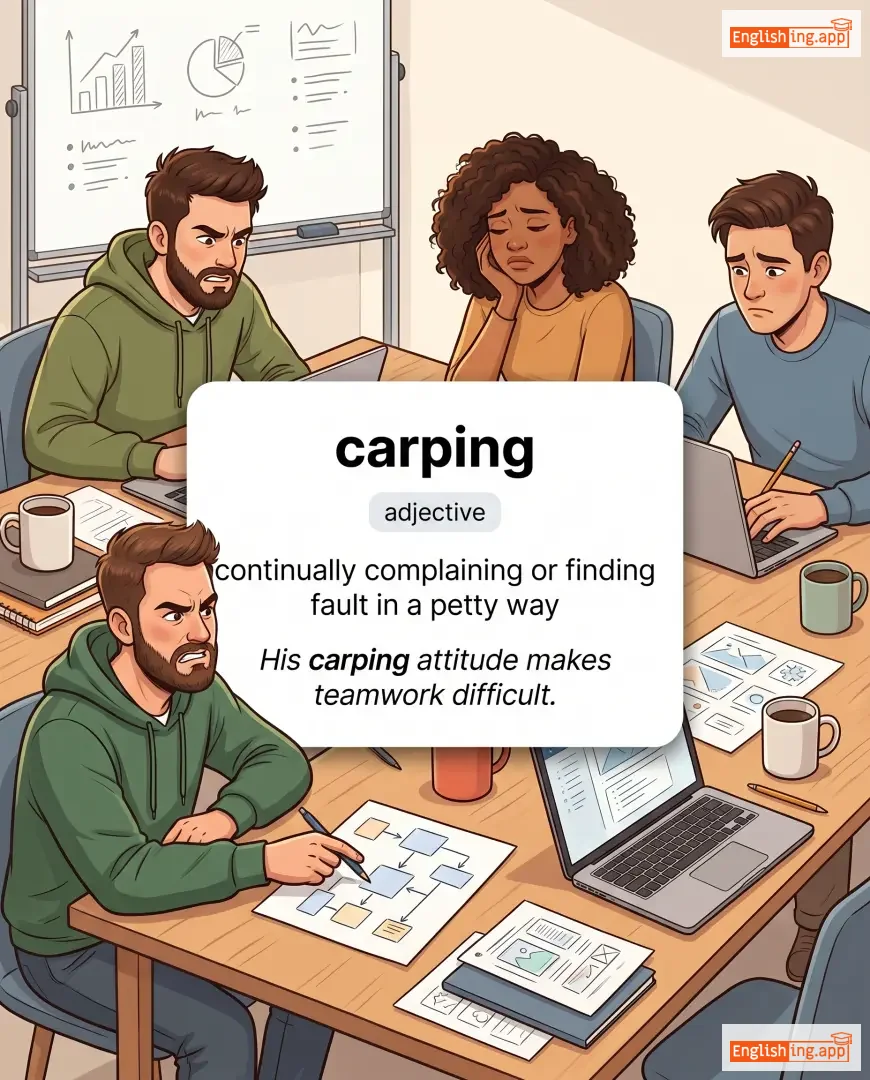 His carping attitude makes teamwork difficult. |