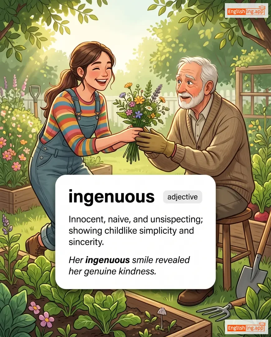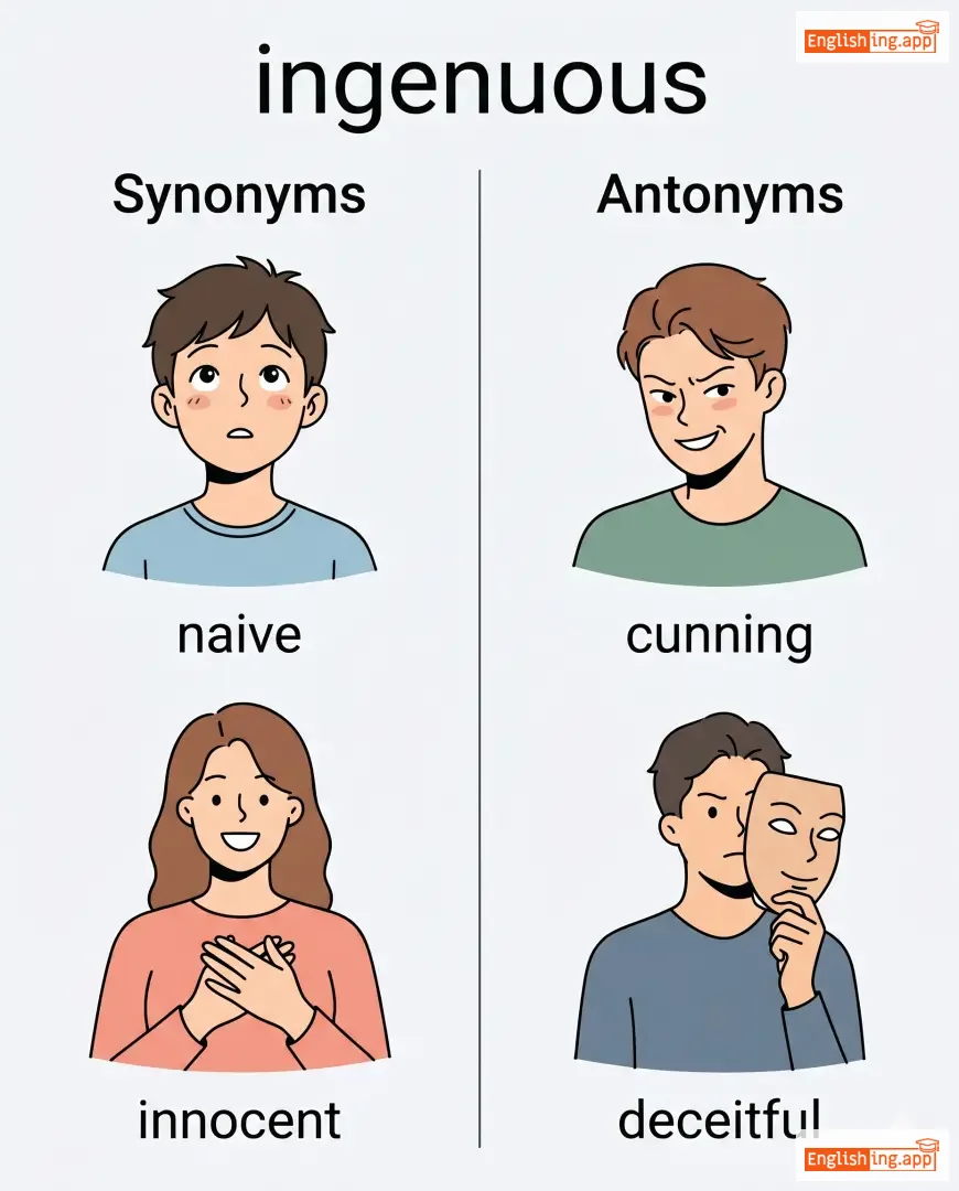 ingenuous smile, ingenuous remark, ingenuous nature, ingenuous expression