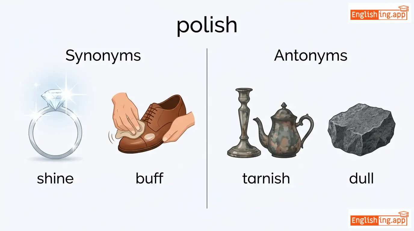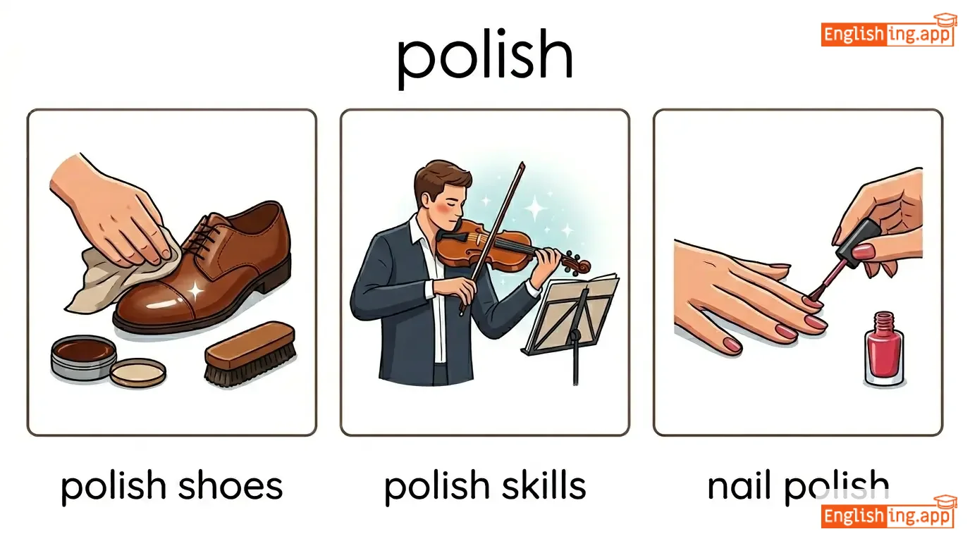 polish shoes, polish skills, nail polish, furniture polish, polish off